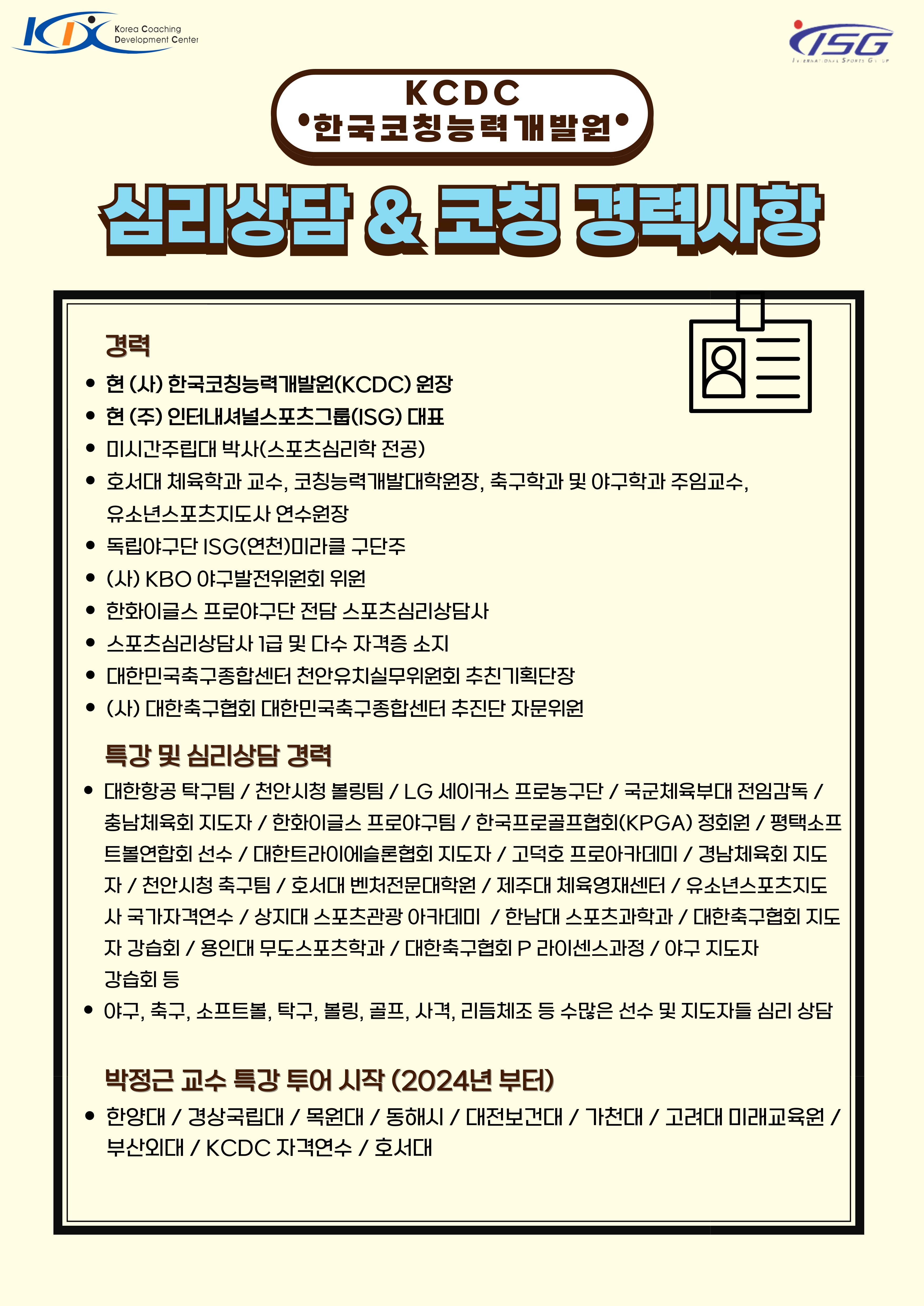 • ㈜인터내셔널스포츠그룹(ISG) 대표