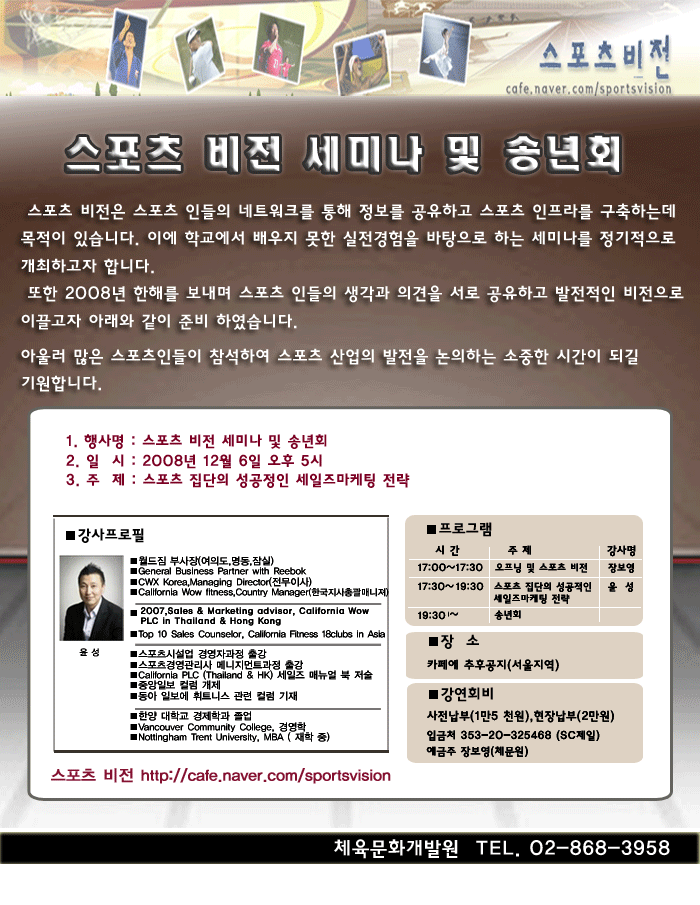 한해를 정리하며 스포츠인들이 모여 정보를 공유하고 의견을 나누는 시간을 마련하였습니다.
