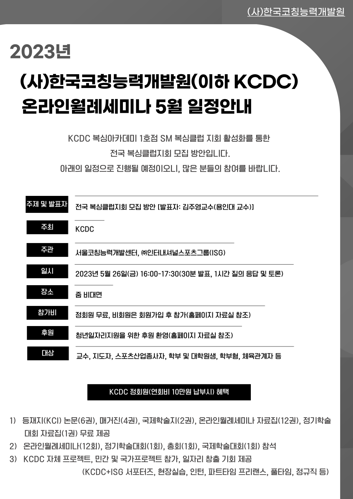 2023년 KCDC 온라인월례세미나 5월 안내