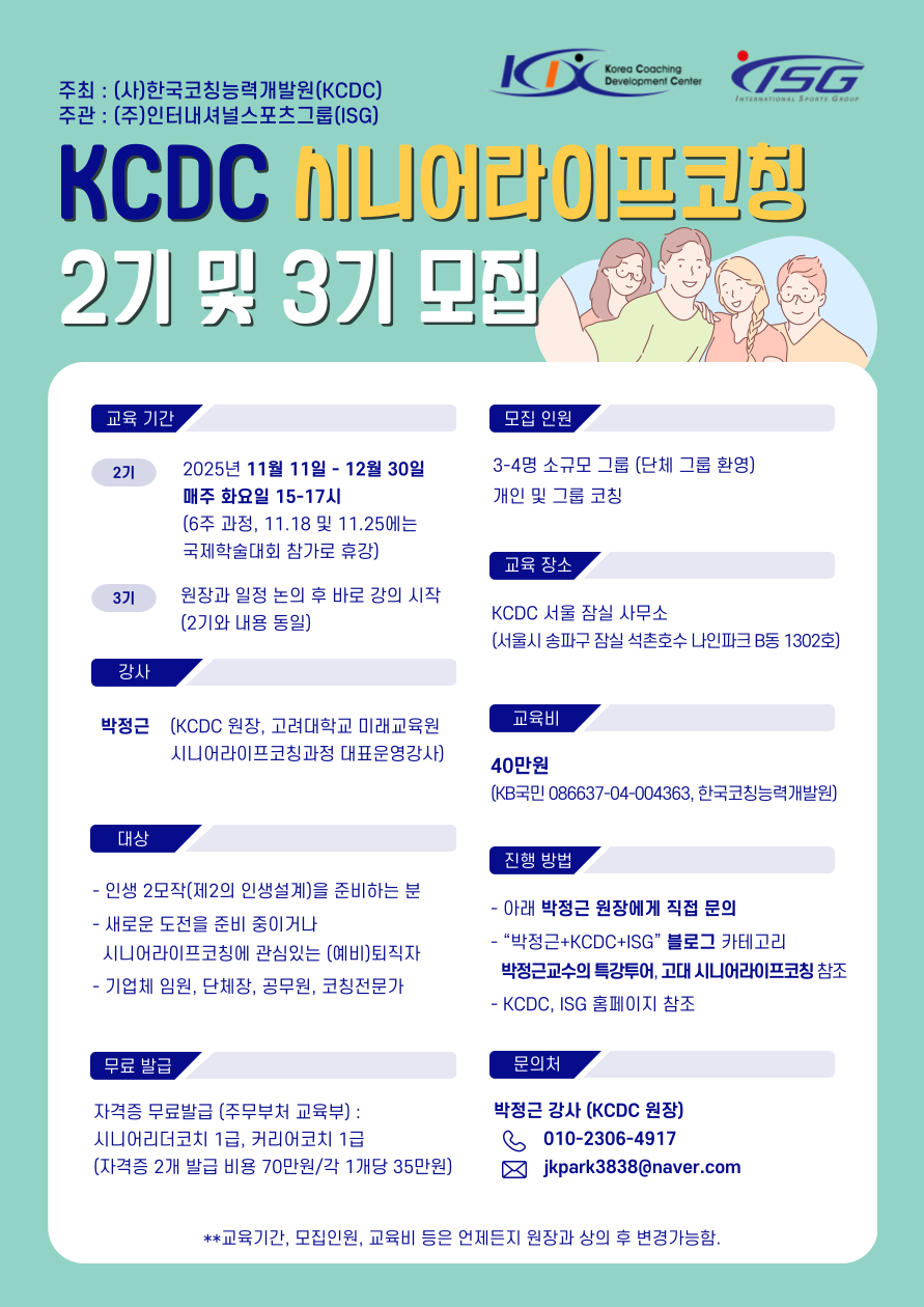 ❙ KCDC 시니어라이프코칭 2기 및 3기 모집 ❙